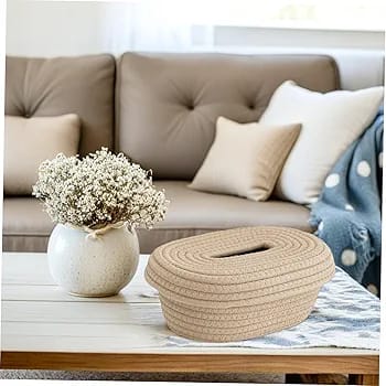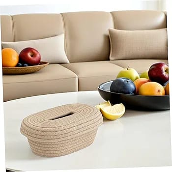 صندوق منسوج بحبل قطني وحامل مناديل لتزيين المنزل والمكتب